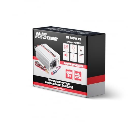 Автомобильный адаптер (инвертер) 24/220V AVS IN-600W-24 позволяет владельцам автомобилей в дорожных условиях сделать возможной работу бытовой аудио-видео техники, компьютера, ноутбука и прочей оргтехники.