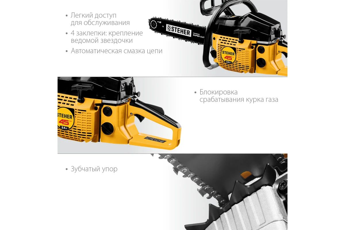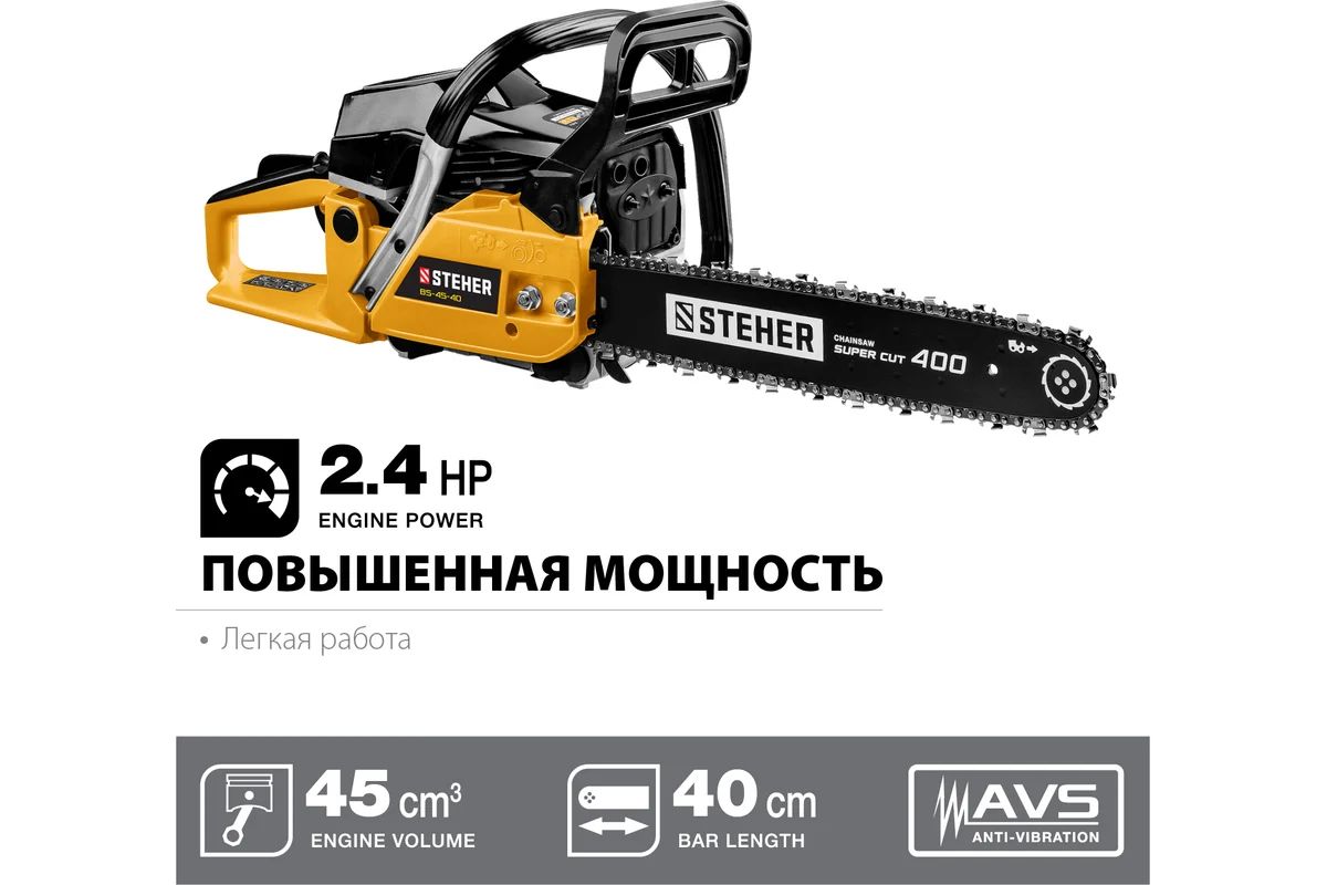 Бензопила STEHER BS-45-40 предназначена для распила заготовок из дерева.