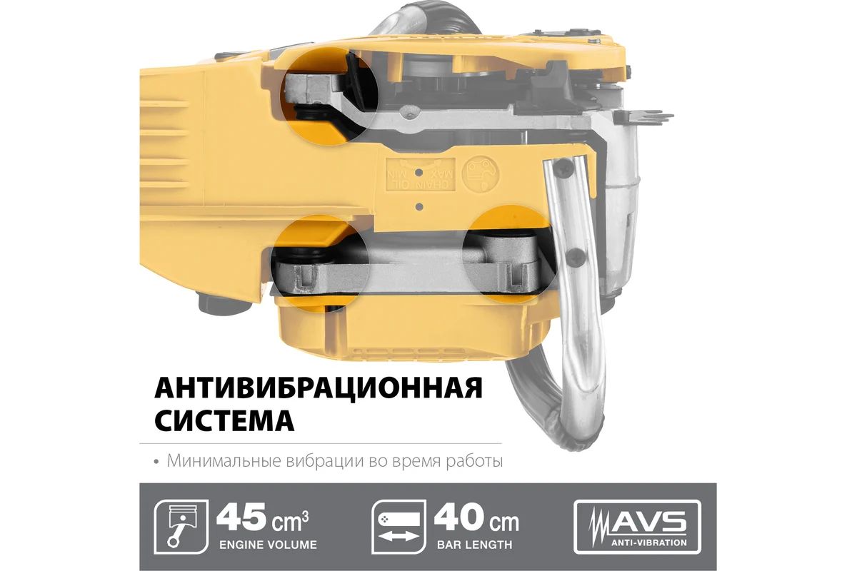 - Рукоятка бензопилы STEHER BS-45-40 имеет удобную для захвата форму