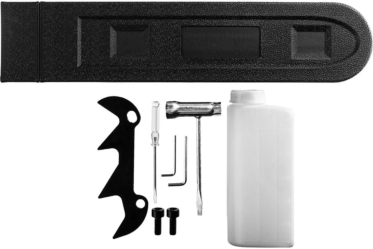 - Укомплектована шиной длиной 40 см для подрезки небольших деревьев и заготовки дров