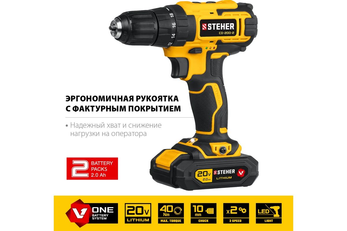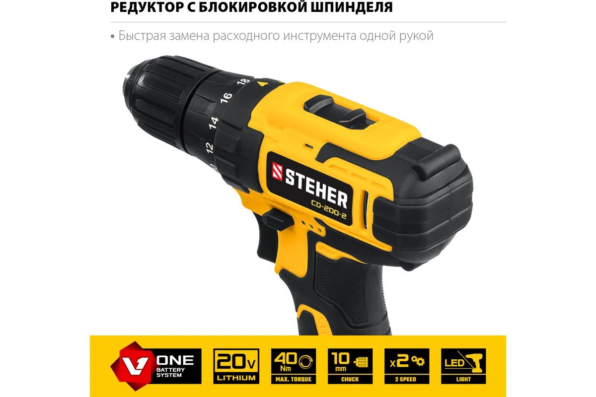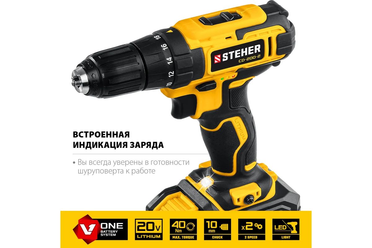 Дрель-шуруповерт STEHER CD-200-2 20В 2х2Ач 40Нм кейс