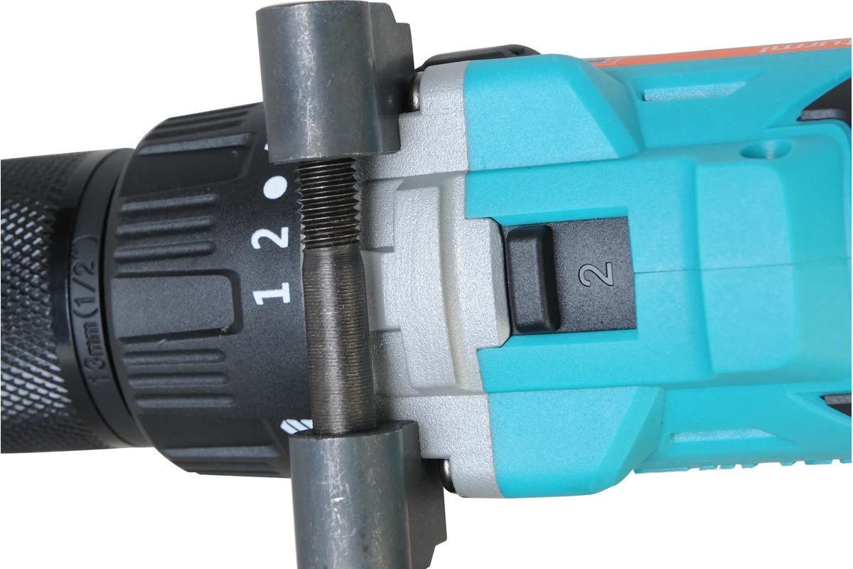 Блокировка шпинделя и широкая муфта быстрозажимного патрона позволяют менять оснастку одной рукой и закреплять её с наилучшей фиксацией. Усиленный цельнометаллический патрон с диаметром захвата 13 мм расширяет набор применения оснастки для выполнения работ с повышенной нагрузкой. Максимальный диаметр сверления вcтали/дереве/бетоне— 13/30/13.