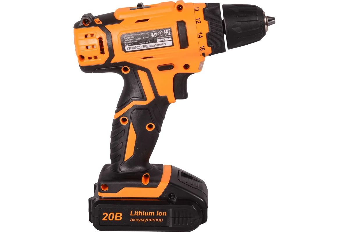 Модель дрели-шуруповерта ВИХРЬ ДА-20Л-2К оснащена двумя литий-ионными аккумуляторами, обеспечивающими автономность работы. Она отличается большим крутящим моментом – 50/25 Н*м и возможностью регулирования в пределах от 0 до 1400 об/мин, что в совокупности позволяет настраивать инструмент для работы с различными материалами, решая задачи любой сложности. Частота вращения регулируется силой нажатия на курок. Она составляет до 400 об/мин на 1 скорости и доходит до 1400 об/мин на второй. Диаметр патрона составляет 0.8-10 мм.
