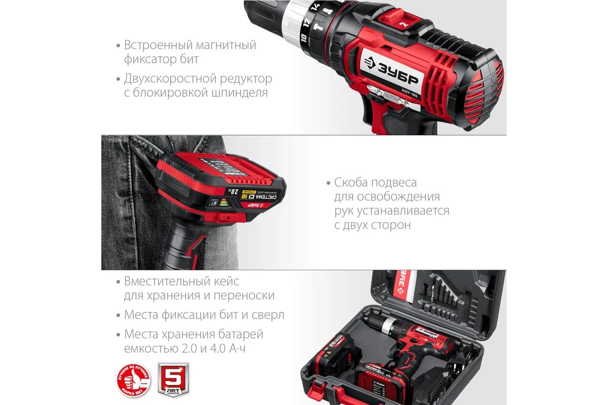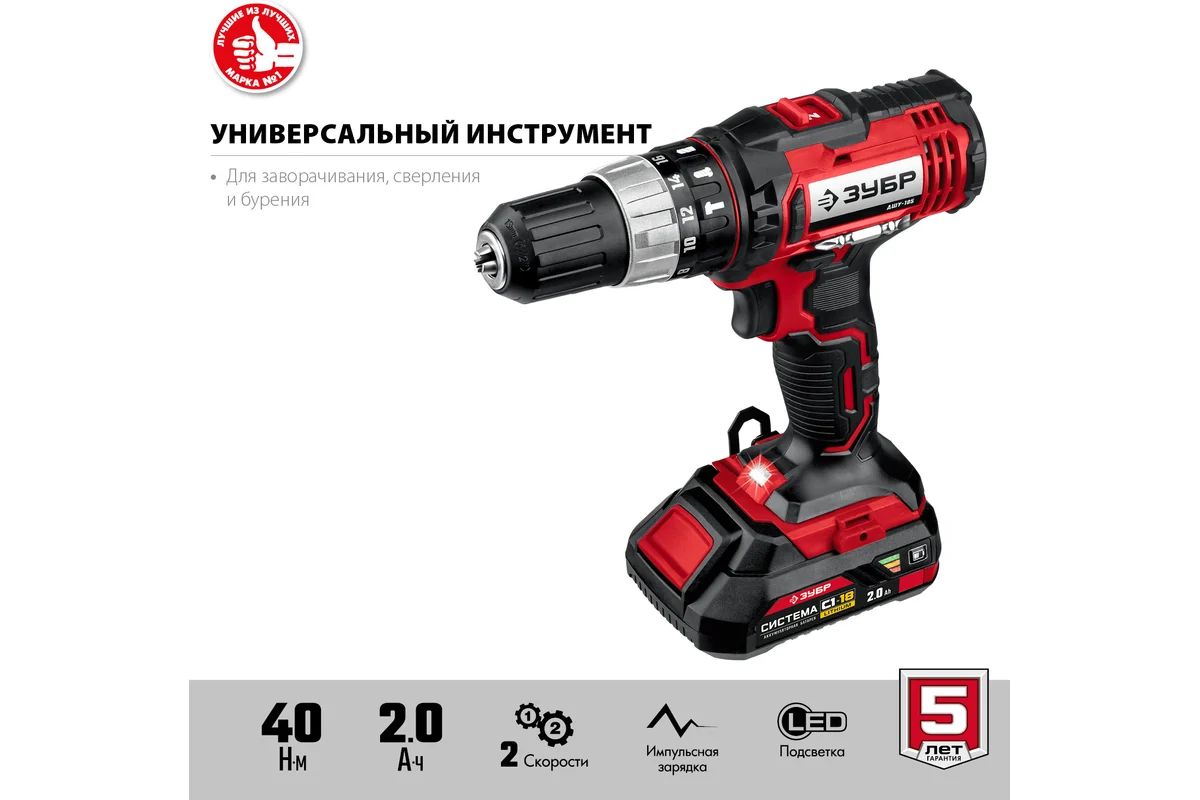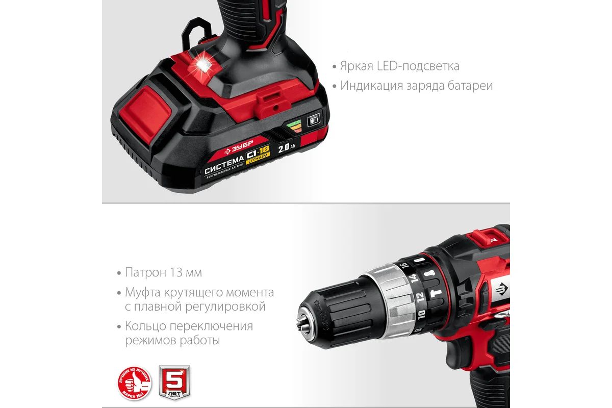 Дрель-шуруповерт ЗУБР ДШУ-185-22 18В 2х2А/ч ударный