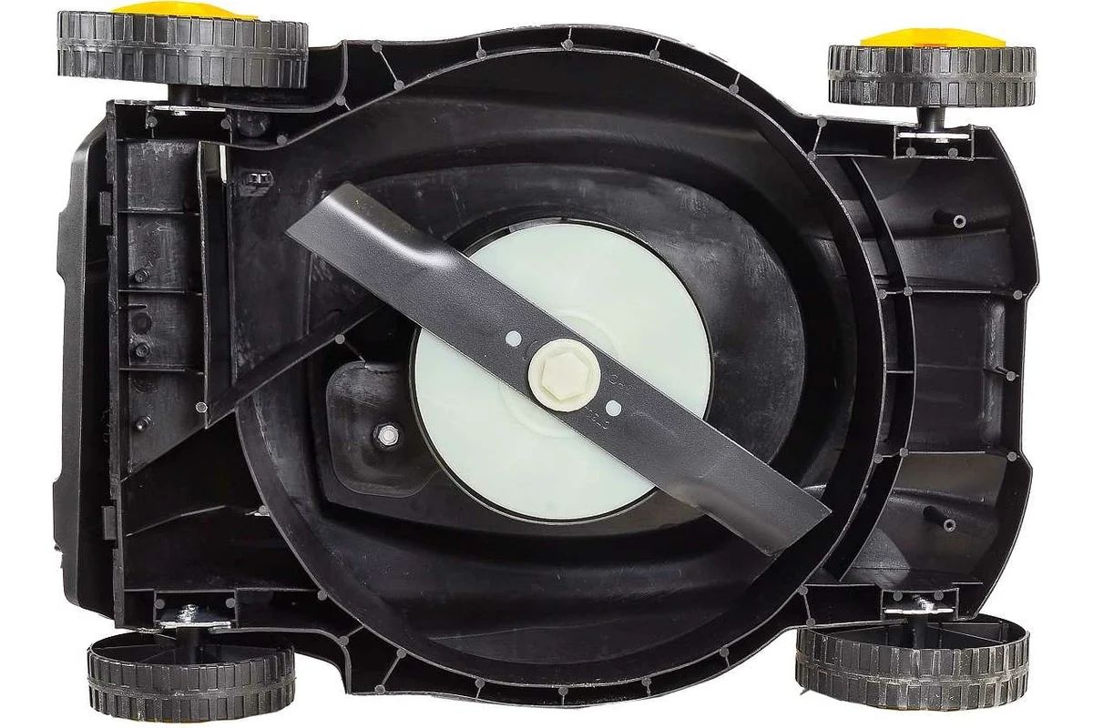 Надежный двигатель мощностью 1400 Вт и нож из прочной стали с большим ресурсом работы обеспечат длительность и беспроблемность эксплуатации. Модель оснащена травосборником объемом 40 литров, который избавит от необходимости частого опорожнения резервуара. Ширина среза за один проход - 380 мм. Высота среза регулируется в диапазоне от 25 до 55 мм.