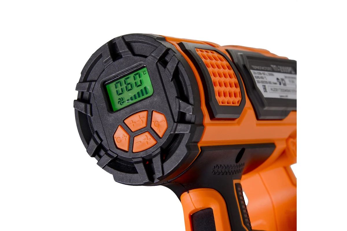 Фен промышленный работает от однофазной сети и оснащен дисплеем и защитой от перегрева мотора. Устройство имеет 2 режима работы с возможностью выбора точной температуры подаваемого воздуха. Это позволяет использовать инструмент для выполнения самых разных задач: удаления краски, ЛКП, нагрева термоусадочных труб, разморозки двигателя, водопровода, морозильной камеры, размягчения клея. Он пригоден для быстрой сушки, пайки, сварки пластика и других материалов. Устройство имеет эргономичную форму, оснащено ступенчатым переключателем и закрытой рукояткой для безопасности использования. Наличие кейса упрощает хранение и транспортировку инструмента.
