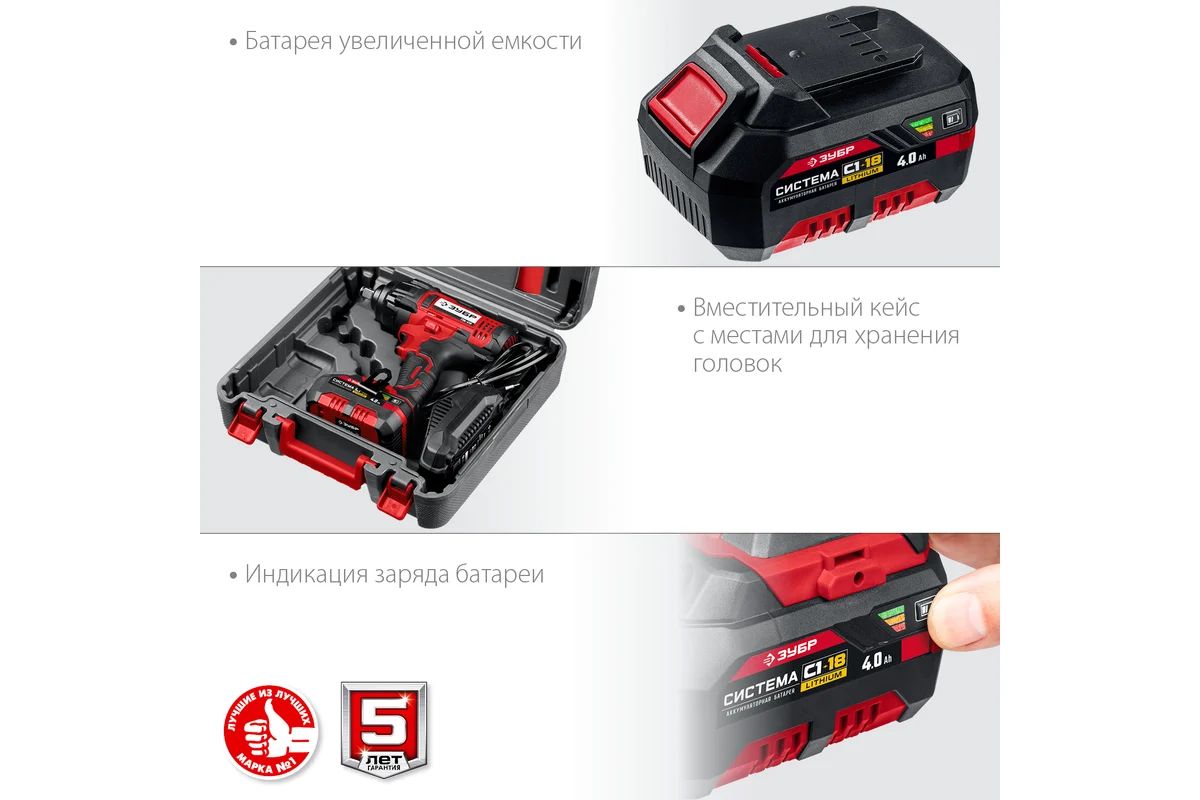 Гайковерт ЗУБР ГУЛ-410-41 18В 400Нм 1х4Ач кейс