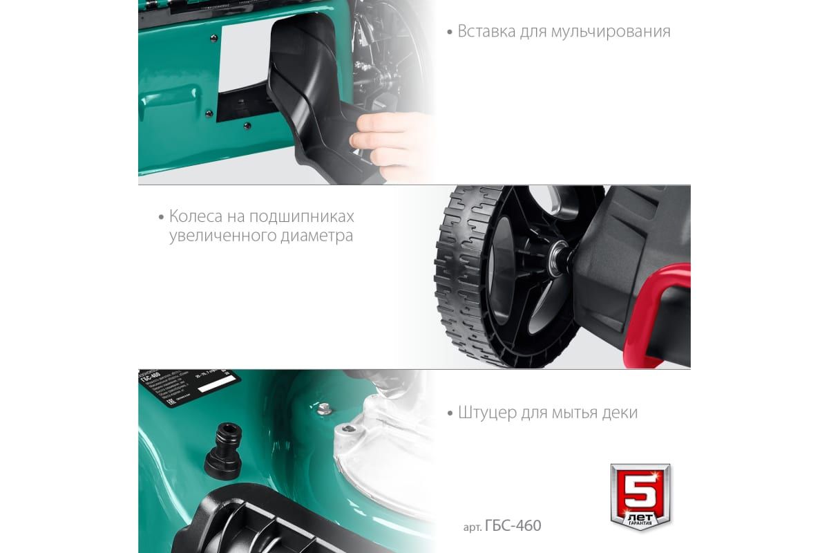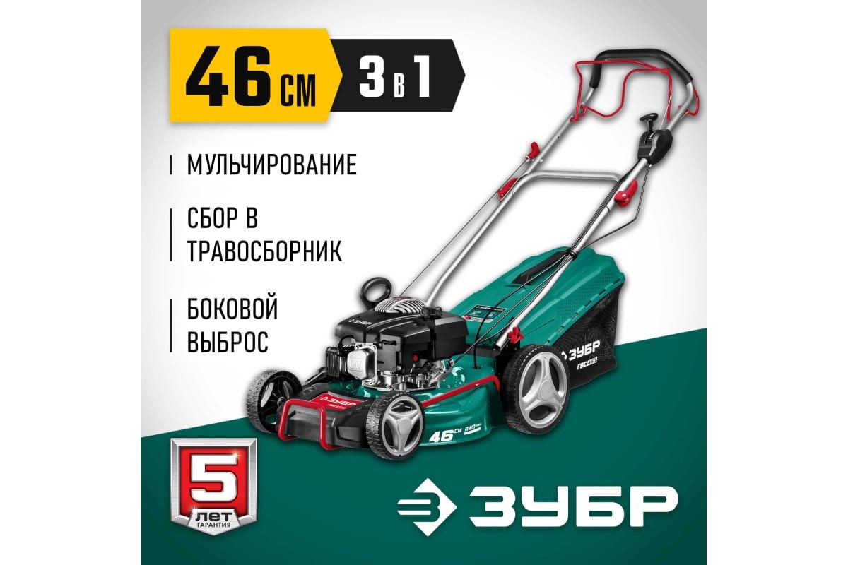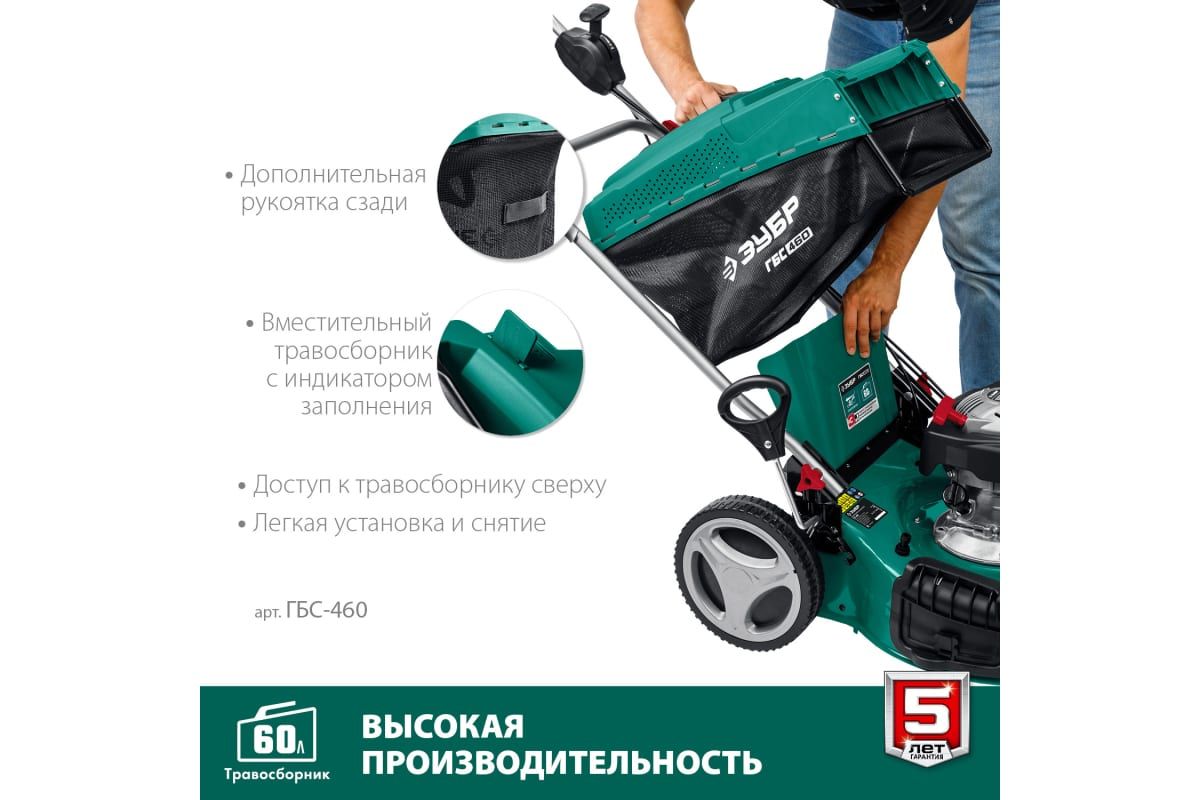 Газонокосилка бензиновая ЗУБР ГБС-460 4.5л.с. 460мм. травосборник, мульчирование.