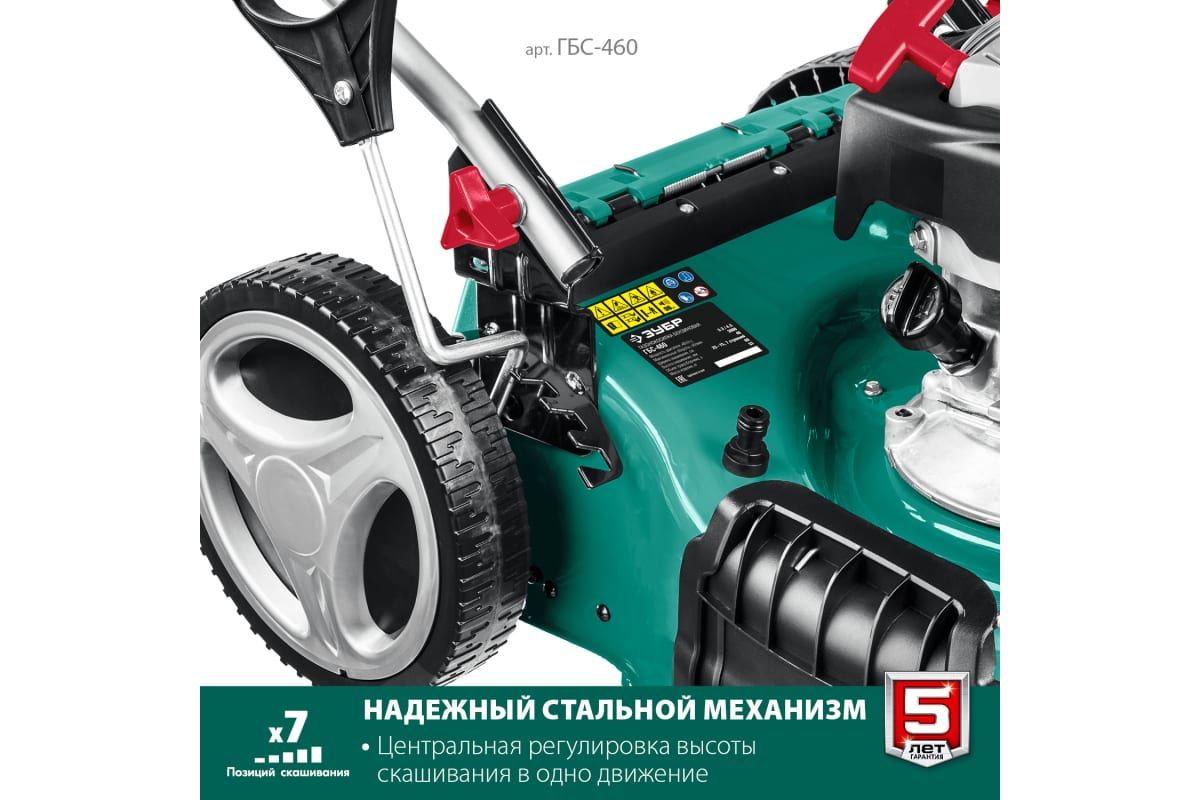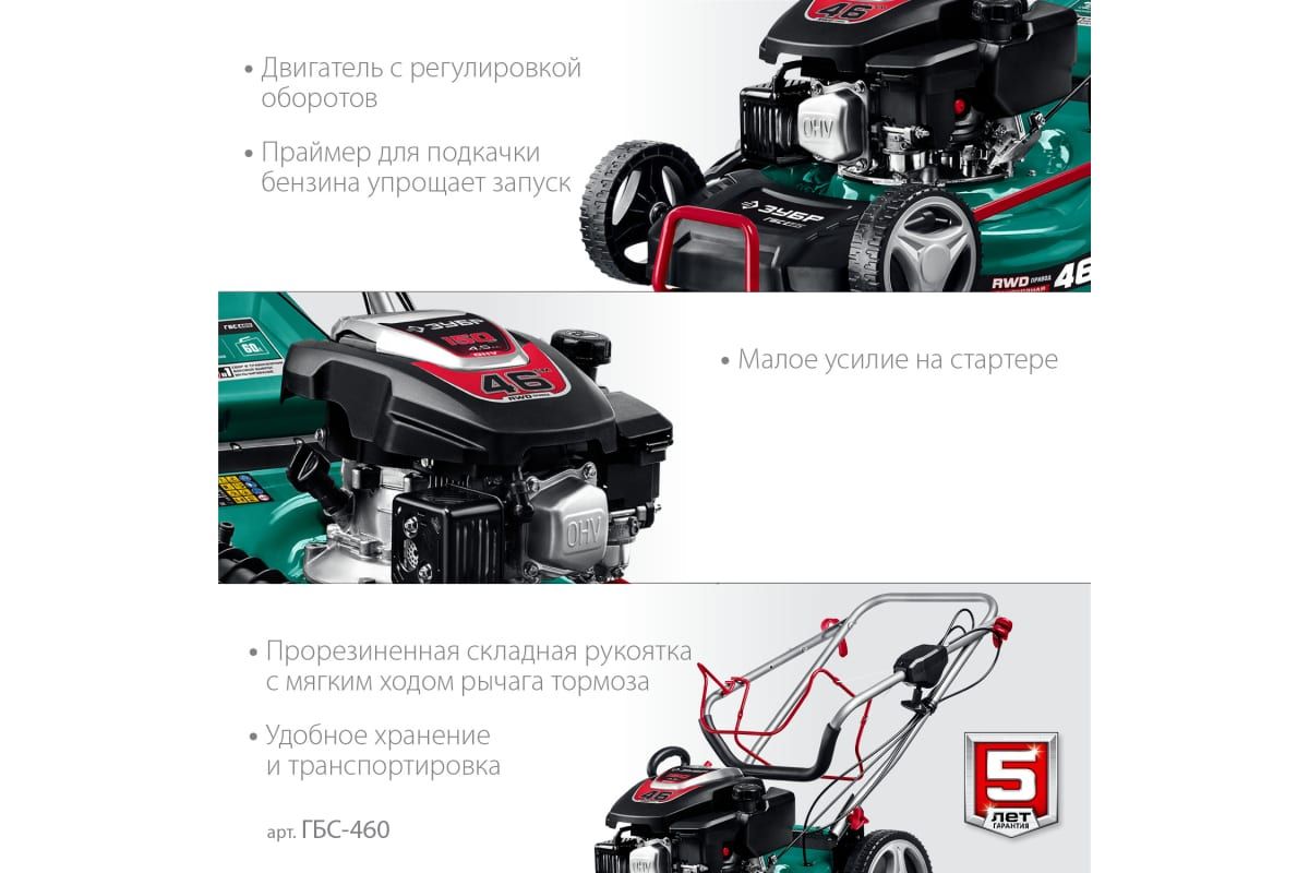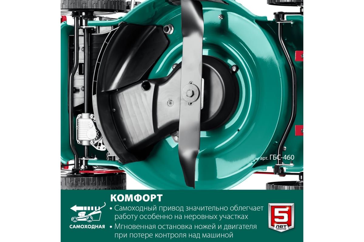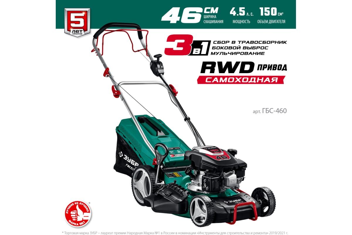 Самоходная бензиновая газонокосилка ЗУБР 460 мм, 4.5 л.с. ГБС-460 – незаменимый помощник для стрижки густой растительности на садовых и придомовых территориях.