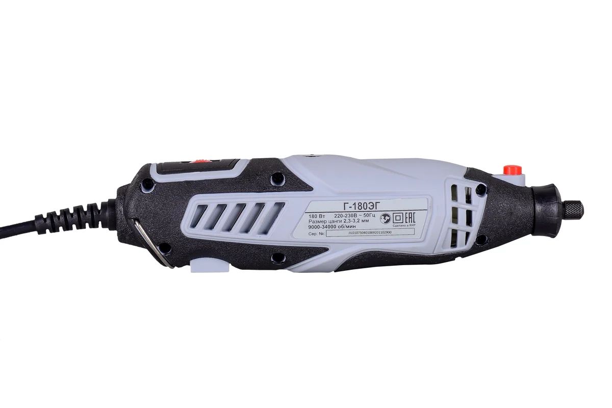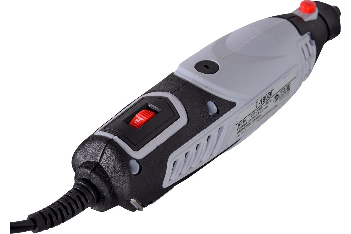 Электрический гравер Ресанта Г-180ЭГ предназначен для тонких работ высокой точности. Мощность щеточного двигателя составляет 180 Вт. Частота вращений шпинделя на холостом ходу равна 9000-34000 об/мин. Это позволяет осуществлять шлифовку, полировку, фрезерование, зачистку, сверление. Гравер подходит для деревянных, металлических, каменных и керамических поверхностей. Возможность регулировки оборотов позволяет настраивать гравер в зависимости от используемого материала. Сменные цанги имеют разный внутренний диаметр 2,3-3,2 мм. Гибкий вал используется для работы в труднодоступных местах. Для защиты от перегиба он оснащен пружинными элементами.
