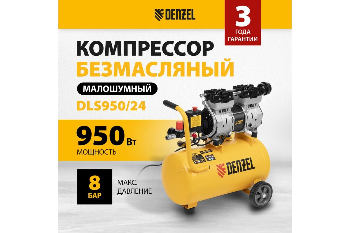 Компрессор Denzel DLS950/24 безмаслянный, 24л. 165л.мин.