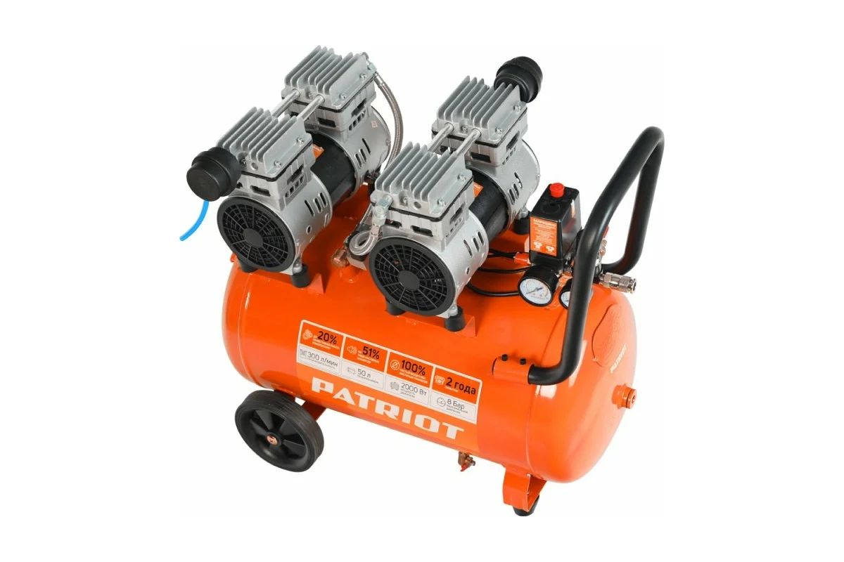 - Поршневой безмасляный компрессор PATRIOT WO 50-300 525301925 готов к работе сразу после покупки, не требует заправки маслом, а так же контроля за наличием масла и его замены