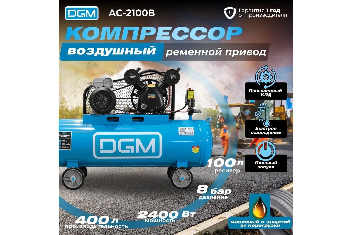 Компрессор ременной DGM AC-2100B 100л. 400л.мин. 2.4кВт. 8бар