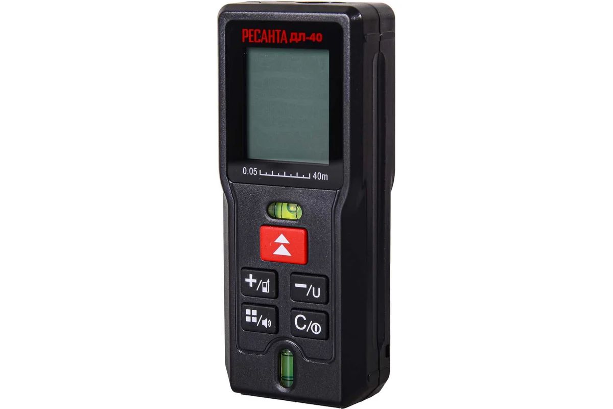 Лазерный дальномер данной модели имеет небольшой вес, что обеспечивает удобство при использовании и транспортировке. Диапазон работы устройства колеблется от 0,05 до 40 м. Мощность излучения составляет <1 мВТ. Ресанта ДЛ-40 может применяться в помещении и на открытом пространстве при температуре от 0 до +45 градусов. Подходит для измерения длины по прямой и под уклоном, расчета площади, объема и пр.