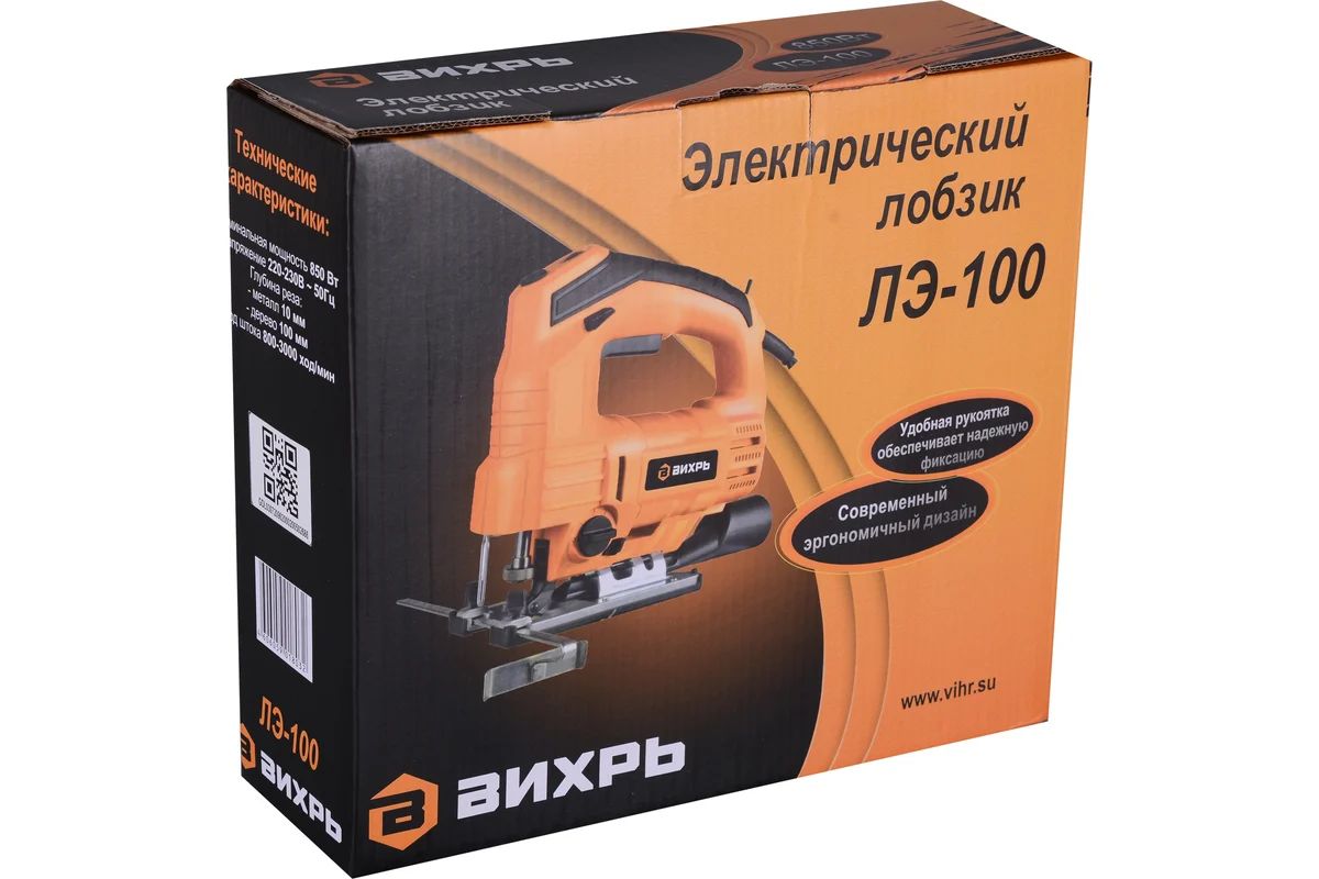 Электролобзик Вихрь ЛЭ-100 мощностью 850 Вт обеспечит удобную и качественную резку древесных материалов, металла, пластмассы.