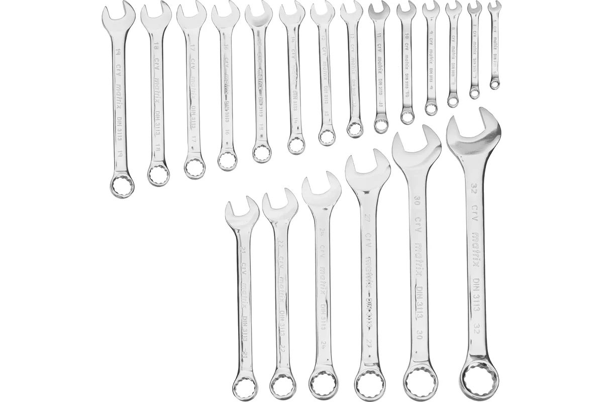 Набор Matrix 15441 включает 20 комбинированных ключей из стали CrV, размером 6-32 мм, с покрытием «полированный хром», которые пригодятся во время ремонтных работ дома или в гараже. С их помощью можно быстро монтировать и демонтировать крепежные элементы. В набор входят инструменты основных типоразмеров, позволяющие эффективно решать поставленные задачи.