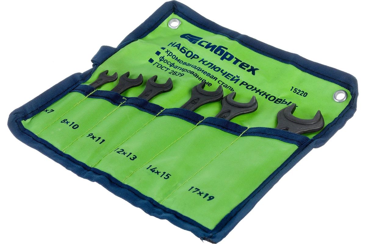 Набор рожковых ключей 6 - 19 мм,6 шт., CrV, фосфатированные, ГОСТ 2839 СИБРТЕХ 15220 выполнен методом горячей ковки и надежно защищен от коррозии за счет специального фосфатирования.