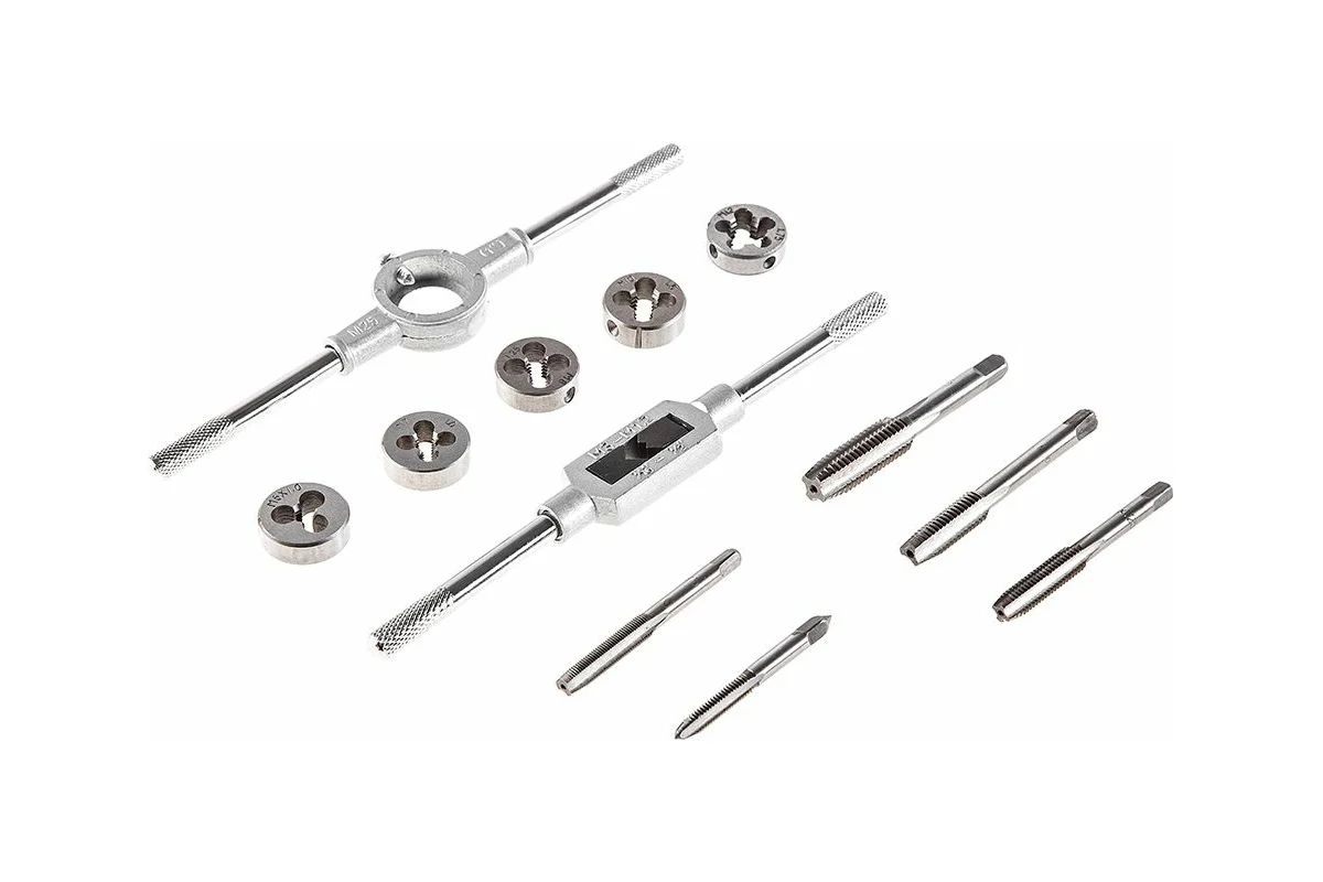 В комплект входят плашки и метчики совместимых между собой размеров. Подготовленные ими детали полностью подходят друг другу.