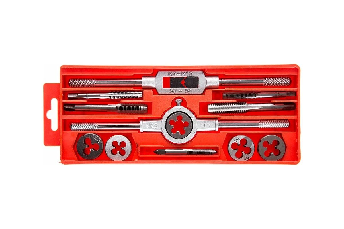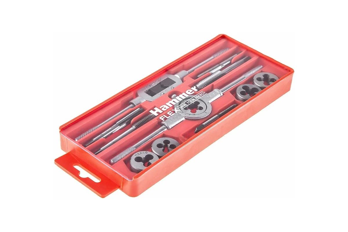 Набор метчиков и плашек Hammer Flex 601-039 12 шт 400856 используется для нарезания метрической резьбы. Маркировка инструментов выгравирована на поверхности, не стирается и заметна даже при загрязнении.