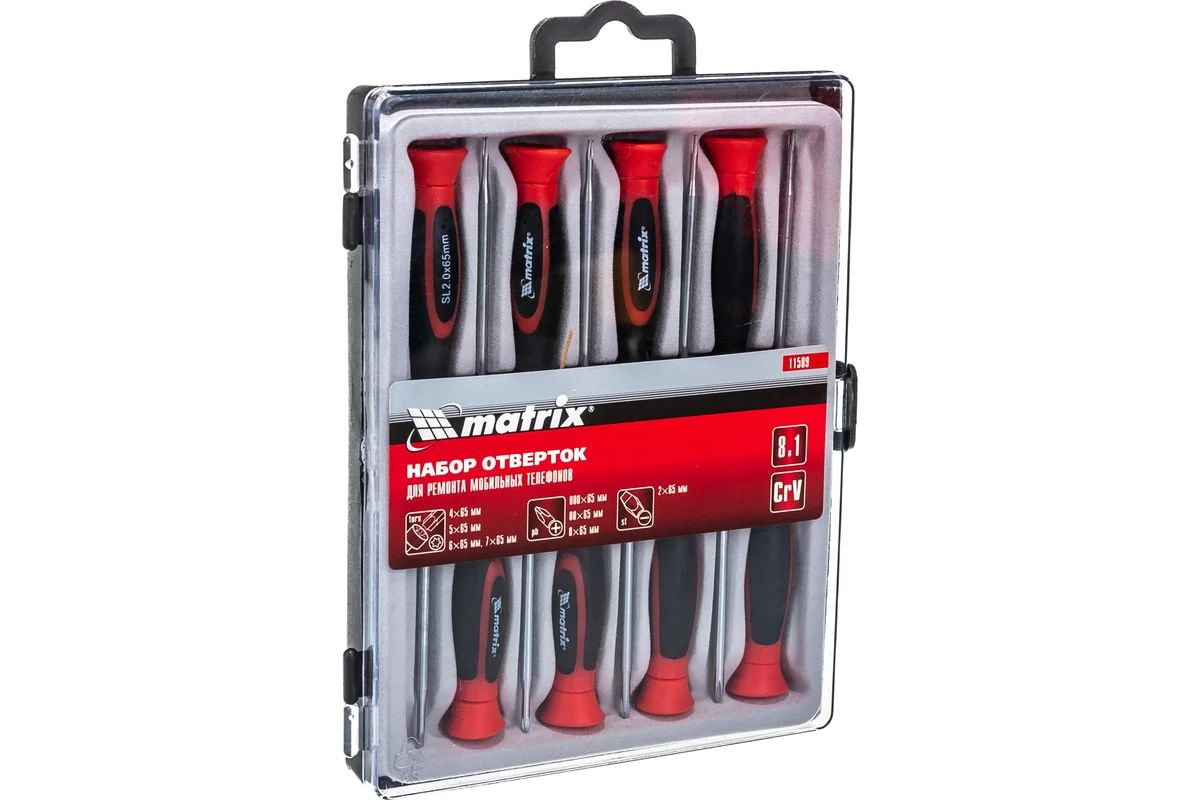 Набор отверток для точных работ с мобильными телефонами 8шт, Crv MATRIX 11589 используется для работы с мелким крепежом. Широко распространен в сфере ремонта часов, мобильных телефонов, планшетов и другой электроники. Отвертки просты в эксплуатации и удобны в обхвате ладонью.