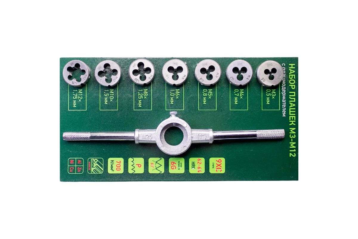 Набор плашек М3-М12, 8 предметов// СИБРТЕХ