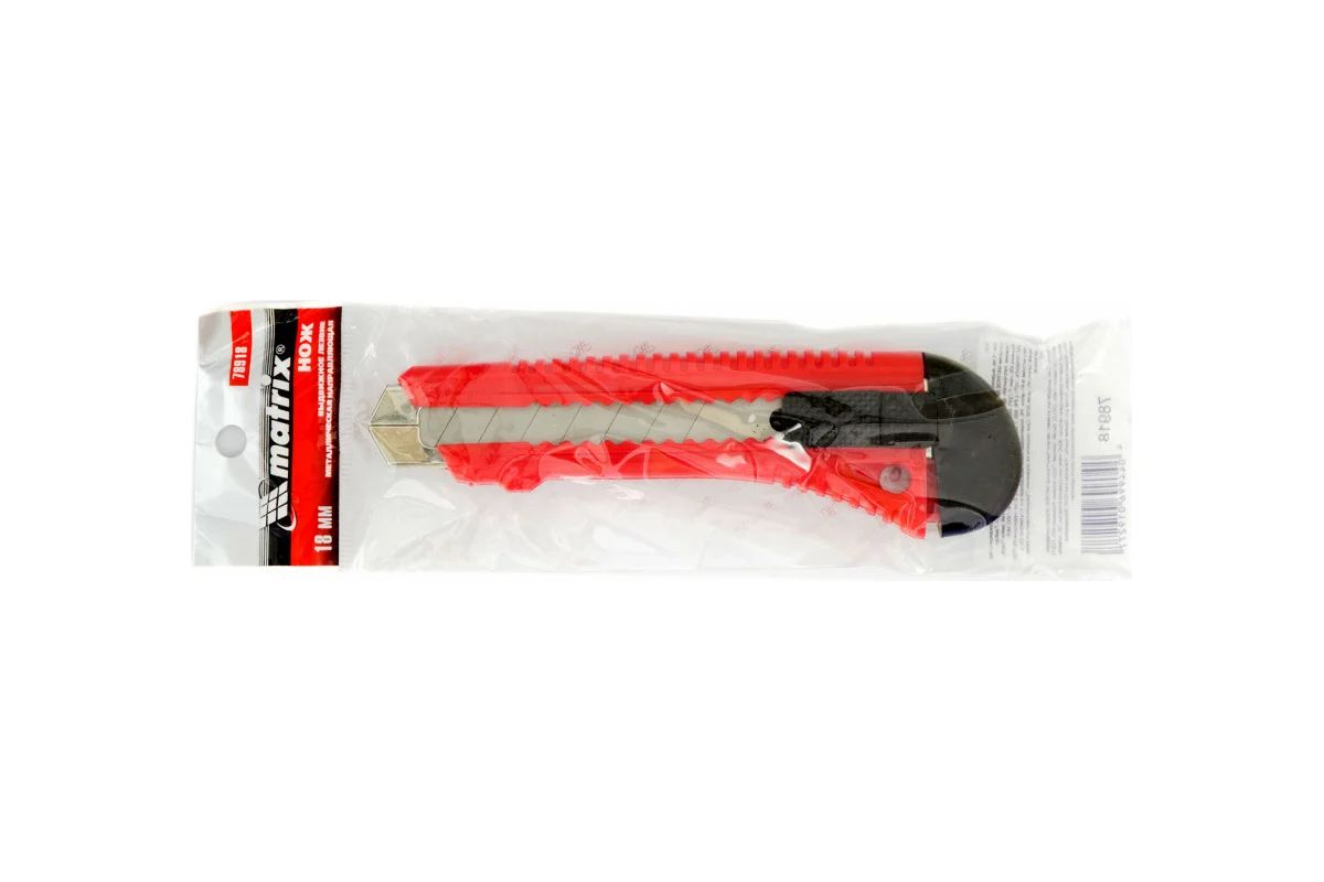 Нож с выдвижным лезвием 18 мм MATRIX 78918 имеет пластмассовый корпус с металлической направляющей и кнопку выдвижения/фиксации лезвия. Замена лезвия осуществляется легко вручную через хвостовую часть ножа. Данный нож используется для разрезания бумаги, картона и прочих материалов.