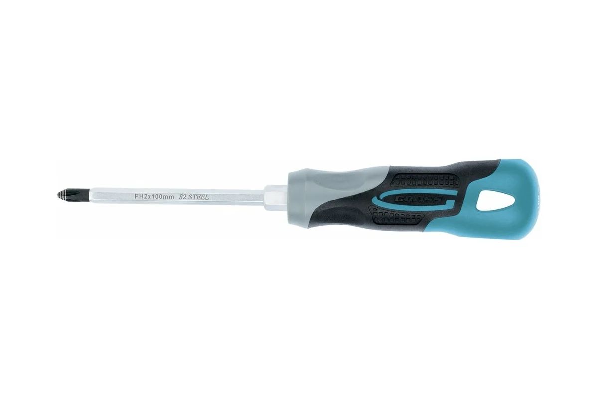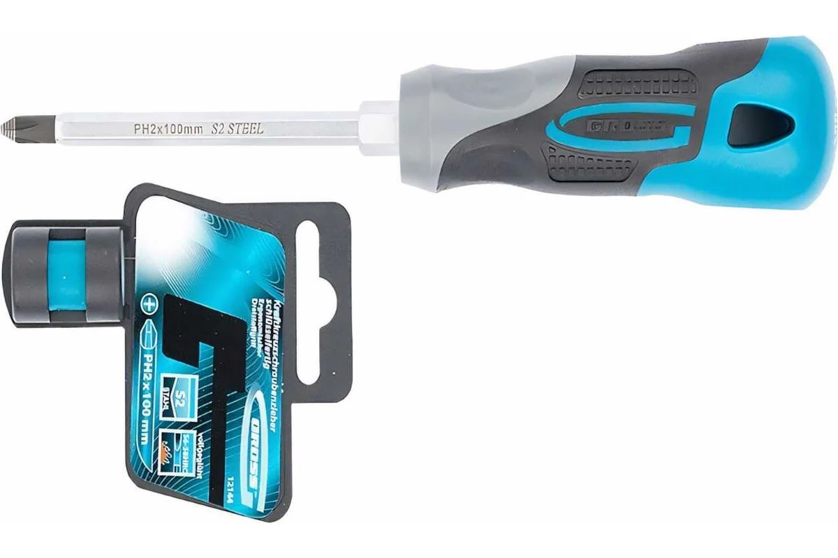Отвертка GROSS PH2x100мм. двухкомпонентная рукоять, сталь S2 (12144)