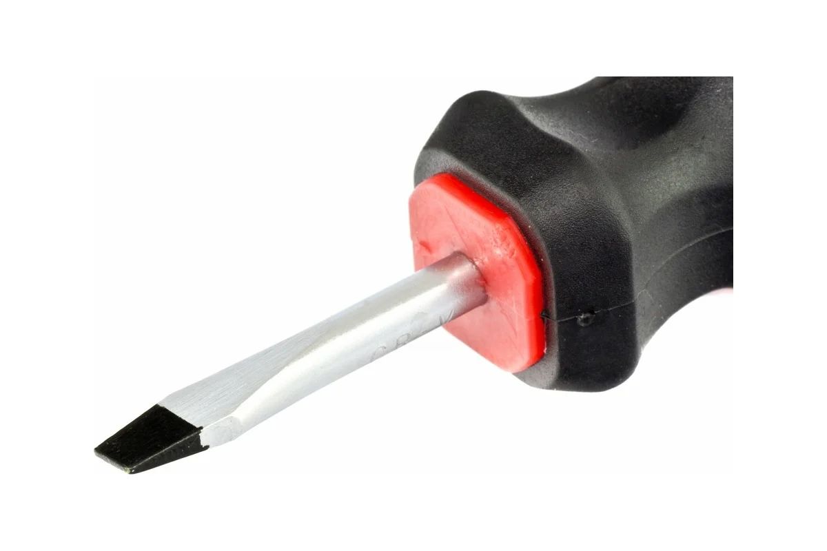 Отвертка Matrix Fusion 11402 под шлиц SL5,0, со стержнем длиной 38 мм, из стали CrV, с 3-компонентной рукояткой «anti slip», предназначена для завинчивания и отвинчивания резьбового крепежа со шлицем Slotted «минус». Рассчитана на профессиональное использование, используется для ремонта автомобилей, монтажа конструкций и решения других задач. Укороченный до 38 мм стержень делает отвертку оптимальным инструментом для работы в труднодоступных местах и ограниченном пространстве.
