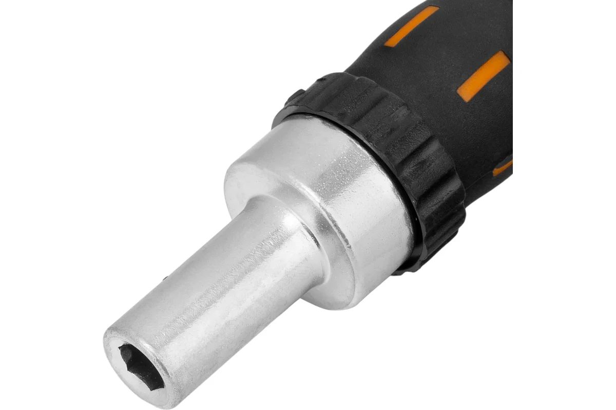 Реверсивная отвертка Sparta 11347 с набором бит, CrV, пригодится мастерам при проведении ремонтных и несложных строительных работ. Широкий ассортимент бит позволяет осуществлять монтаж/демонтаж резьбовых соединений с профилем SL, PH, PZ, TR.
