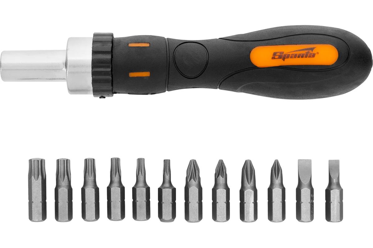 Отвертка реверсивная с набором бит, CrV, 12шт Sparta