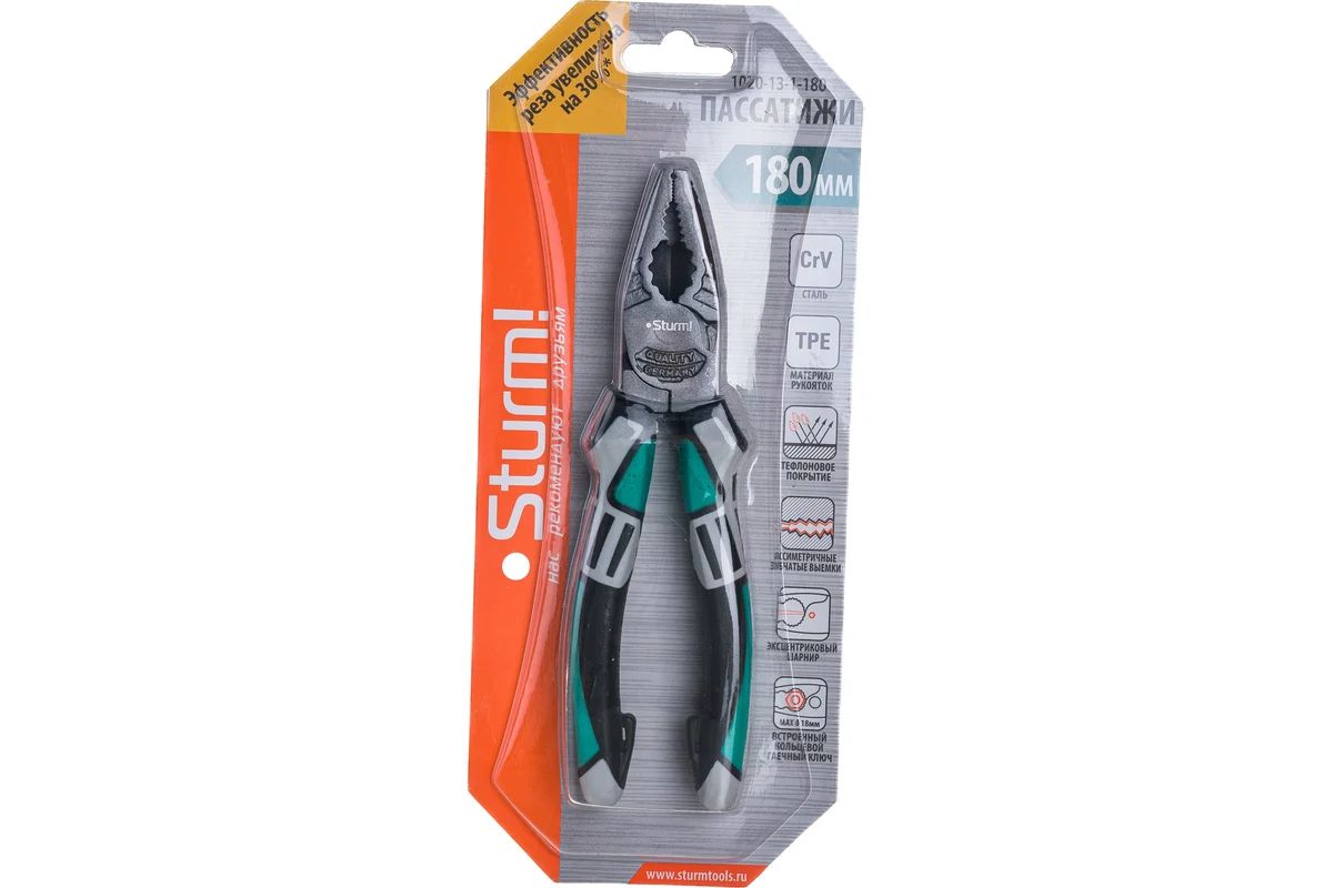 Пассатижи Sturm 180мм, CrV,+30% к силе реза, тефлоновое покрытие,TPE рукоятки, 1020-13-1-180 удобны для работы с большим усилием. Специальное покрытие исключает налипание обмотки проводов при их перекусывании.