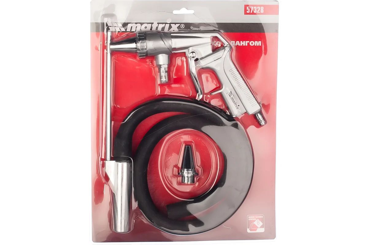 Пескоструйный пистолет со шлангом MATRIX 57328 предназначен для очистки поверхности от грязи, ржавчины, краски, стойких загрязнений. Для работы применяется промытый кварцевый песок или специальная абразивная смесь. Диаметр сопла составляет 6 мм.