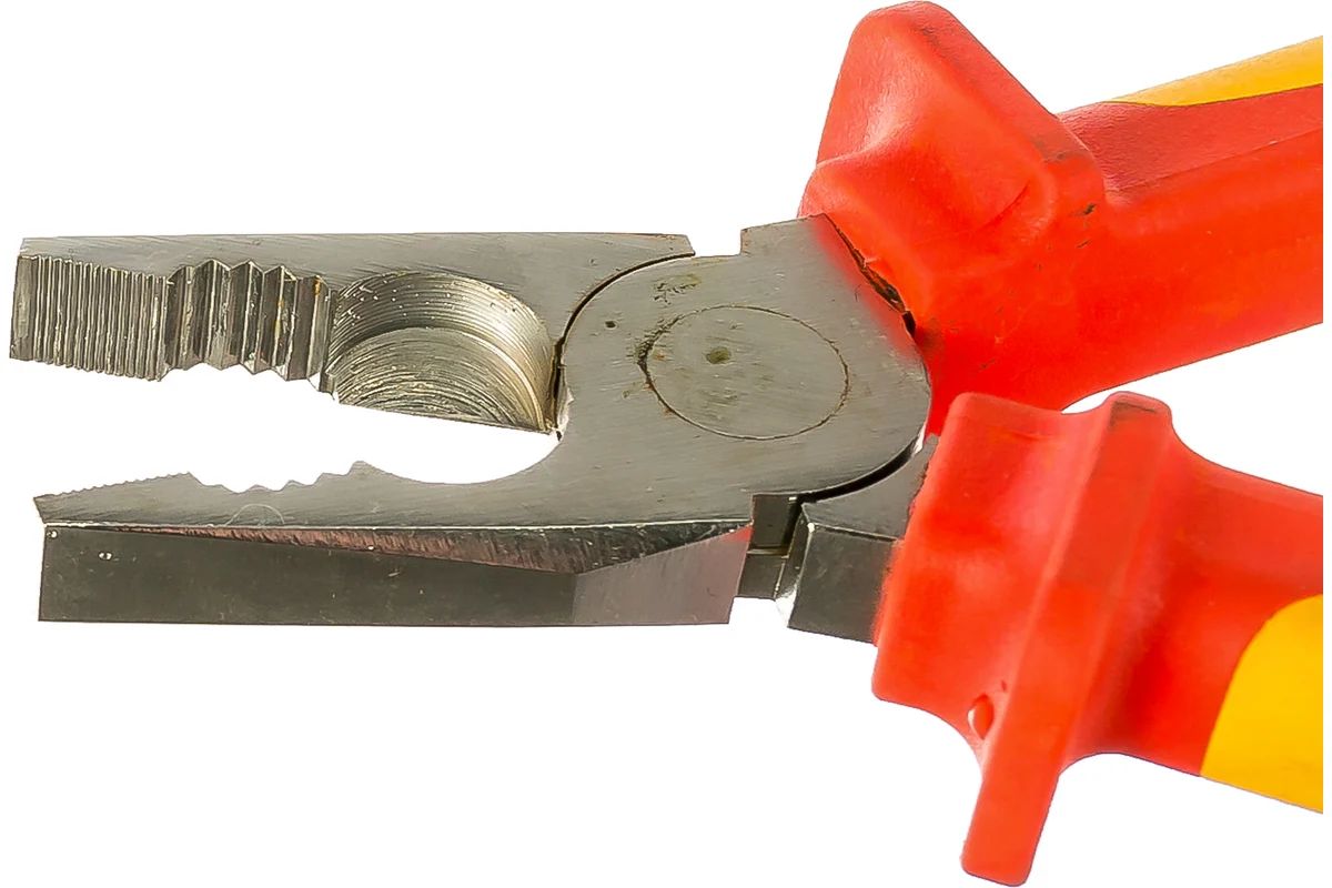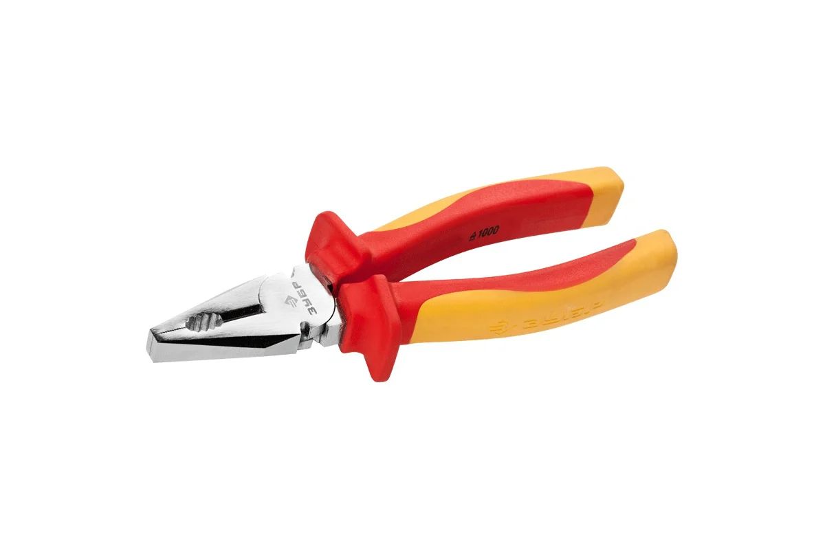 Диэлектрические комбинированные плоскогубцы до1000В, 200мм Зубр ЭКСПЕРТ ЭЛЕКТРОМОНТАЖНИК 22145-1-20 имеют двойное изоляционное покрытие, которое подвержено индивидуальному тестированию на пробу 1000В. Инструмент станет прекрасным помощником для профессионального электромонтажника, работающего с электроустановками под высоким напряжением. Особая форма рукояток с защитными выступами препятствует риску соскальзывания ладони и поражению электрическим током. Губки дополнительно закалены токами высокой частоты, поверхность защищена от коррозии и механических повреждений за счет хромоникелевого покрытия. Такие качества значительно повышают рабочий ресурс инструмента. Плоскогубцы сертифицированы по ГОСТ 11516-94.