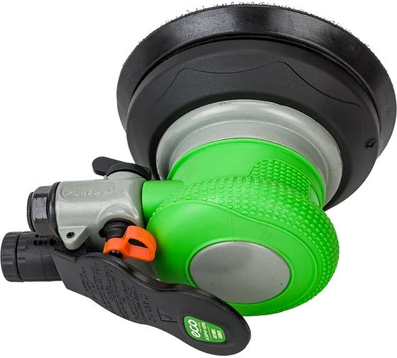 Пневматическая эксцентриковая шлифовальная машина 125 мм ECO ASP11-125 – предназначена для шлифования и полирования ровных и выпуклых поверхностей из дерева пластмасс, цветных металлов, стали и аналогичных материалов, шпатлеванных или покрытых лаком верностей. Полировальная пневмошлифмашина подходит для зачистки сварных швов и заусенцев на металлических изделиях, полировки авто, фар, шлифования тонких сварных швов, полирования и реставрации мебели, пола, потолков, стен. Мини пневмошлифовальная машинка работает от воздушного компрессора, с рабочим давлением в 6,3 бар и расходом воздуха - 180 л/мин. Это дает возможность работать длительное время без перерыва в отличие от электрического инструмента. Легкая 0,92 кг благодаря отсутствию мотора в корпусе. Пневмоинструмент подходит для мокрого и сухого шлифования. Шлифовка имеет регулировку скорости воздушного потока, что удобно при обработке различного материала и работе с кругами с разным типом зернистости. Максимальная скорость вращения в 10 000 об/мин при ходе эксцентрика в 5 мм. Рабочим инструментом шлифмашины является пластиковый диск с липучкой (опорная тарелка), на который крепится шлифовальный круг 125 мм / 5". Присоединительное отверстие 1/4". Корпус изделия изготовлен из прочного пластика, а рукоятка оснащена прорезиненной оболочкой, для хорошего удержания инструмента и низкого уровеня вибрации. Гарантийный срок 1 год.
