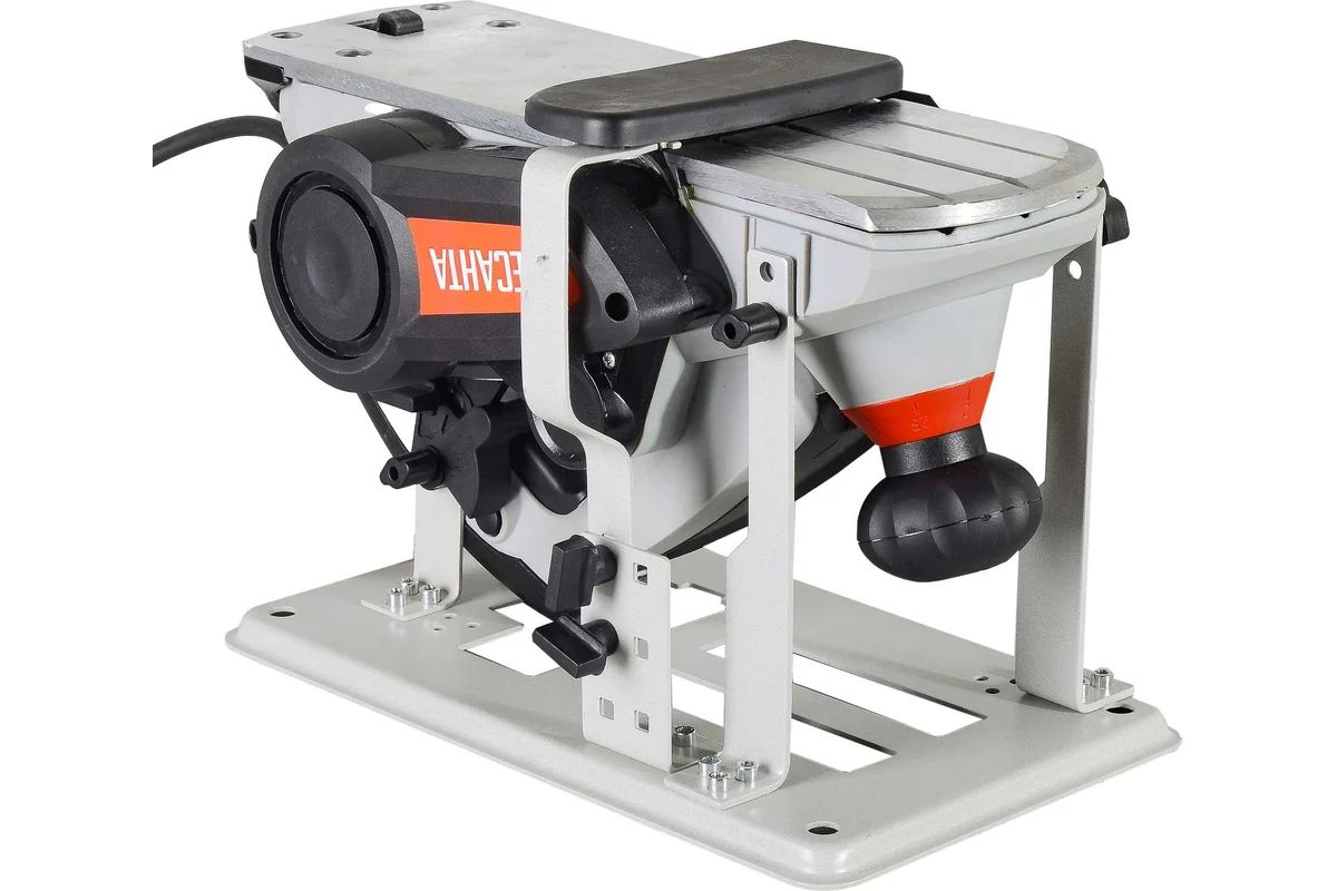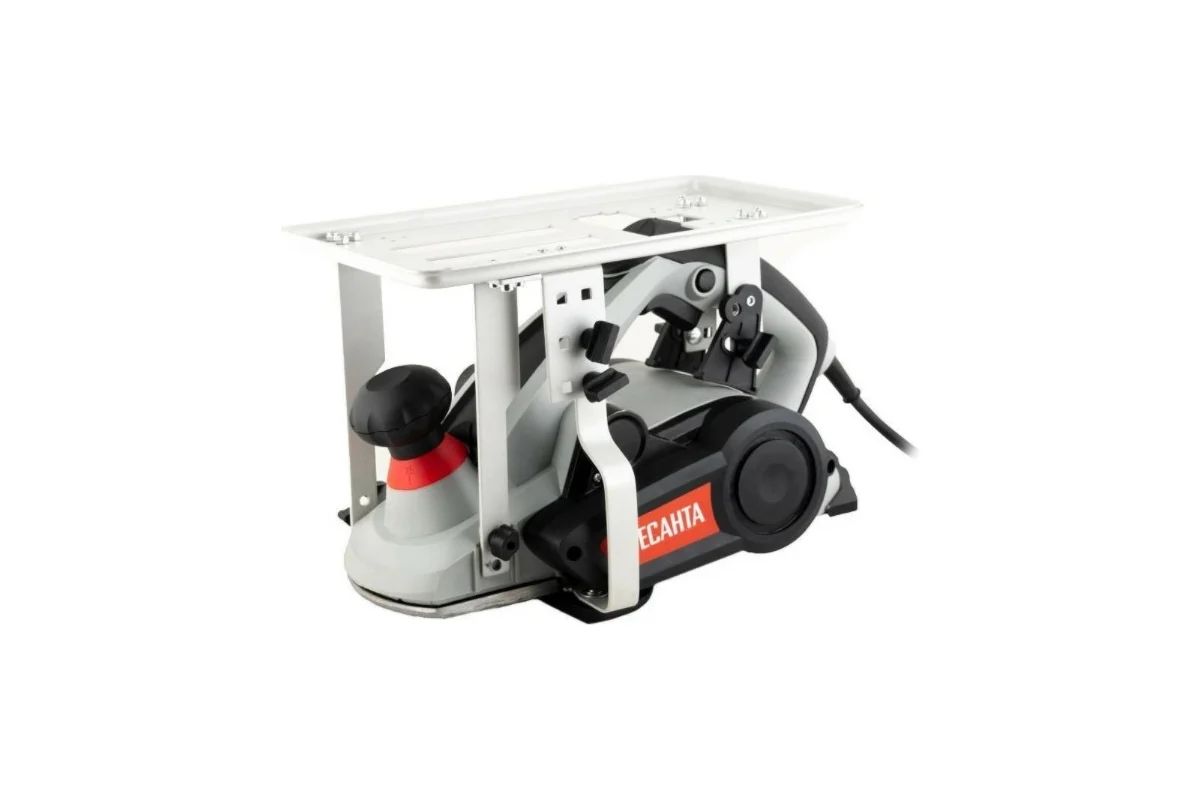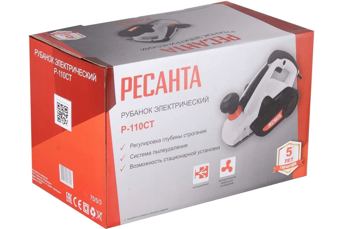 Отличительной особенностью модели Ресанта Р-110СТ является наличие стационарного крепления, что позволяет работать инструментом как станком, обрабатывая с большой точностью более мелкие заготовки. В конструкции рубанка реализован направленный выброс стружки, что делает работу с инструментом комфортной и безопасной. Инструмент имеет защиту от несанкционированного включения. Для того чтобы включить рубанок, требуется предварительно нажать кнопку предохранителя и, удерживая её, нажать клавишу запуска. Питание осуществляется от сети 220 В, 50 Гц.