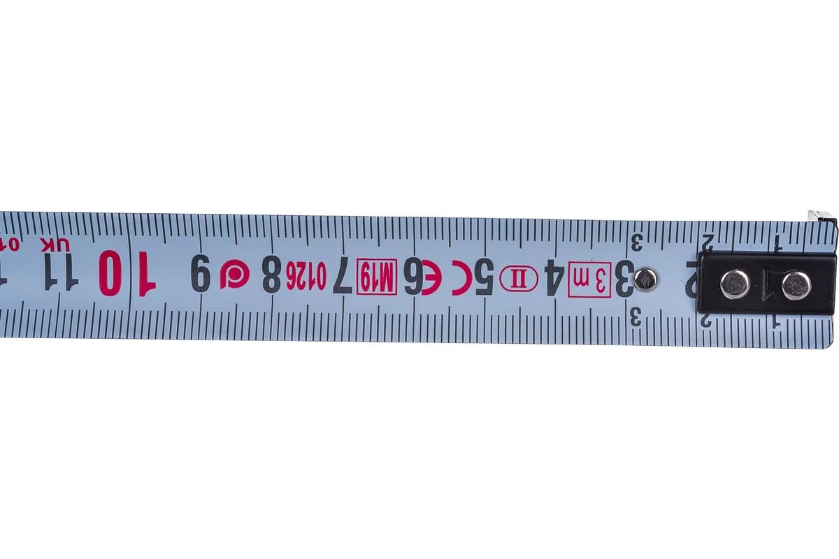 Для наилучшего комфорта работ зацеп имеет мощный двойной магнит, с силой прижатия способной выдержать1500г, благодаря которому обеспечивается его надежная фиксация к металлосодержащим поверхностям, что помогает выполнить замеры в одиночку, либо соединить вместе две рулетки для измерения увеличенной до 6 метров длинны с одной стоянки без перехода.