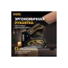 Двухкомпонентная рукоятка не выскальзывает из ладони, что обеспечивает надежный хват и комфортное использование. Регулировка силы удара позволяет закреплять тонкие материалы без риска их разрыва. Благодаря механизму быстрой загрузки установка скоб занимает несколько секунд, что упрощает подготовку инструмента к работе.