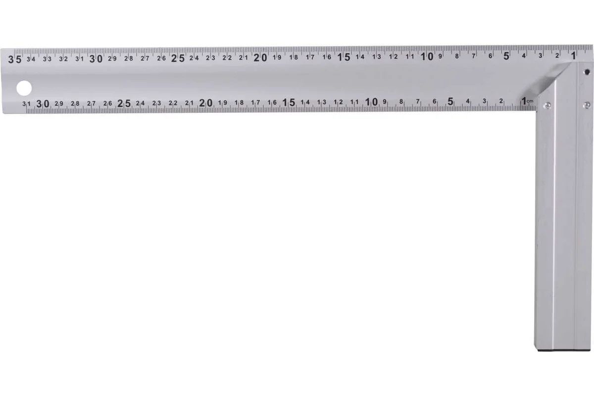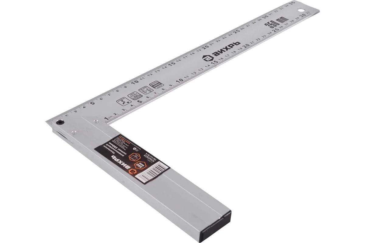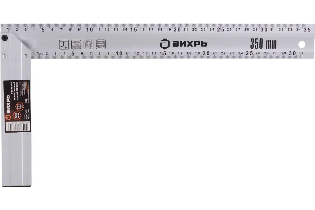 Алюминиевый литой угольник 350 мм Вихрь 73/11/3/4 можно использовать для нанесения разметки и определения углов 45/90 градусов.
