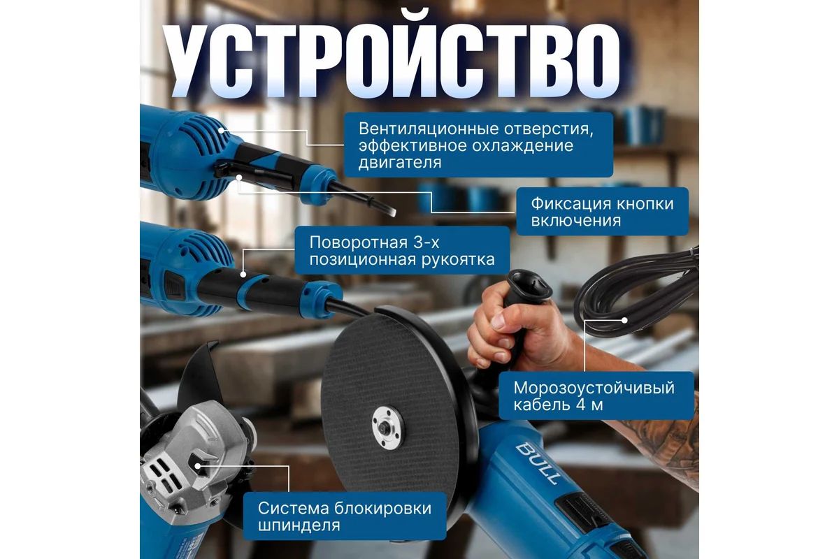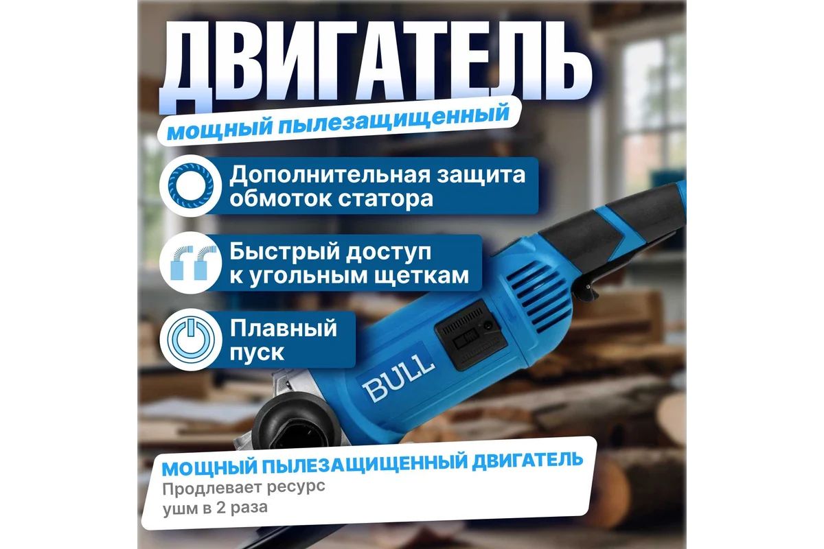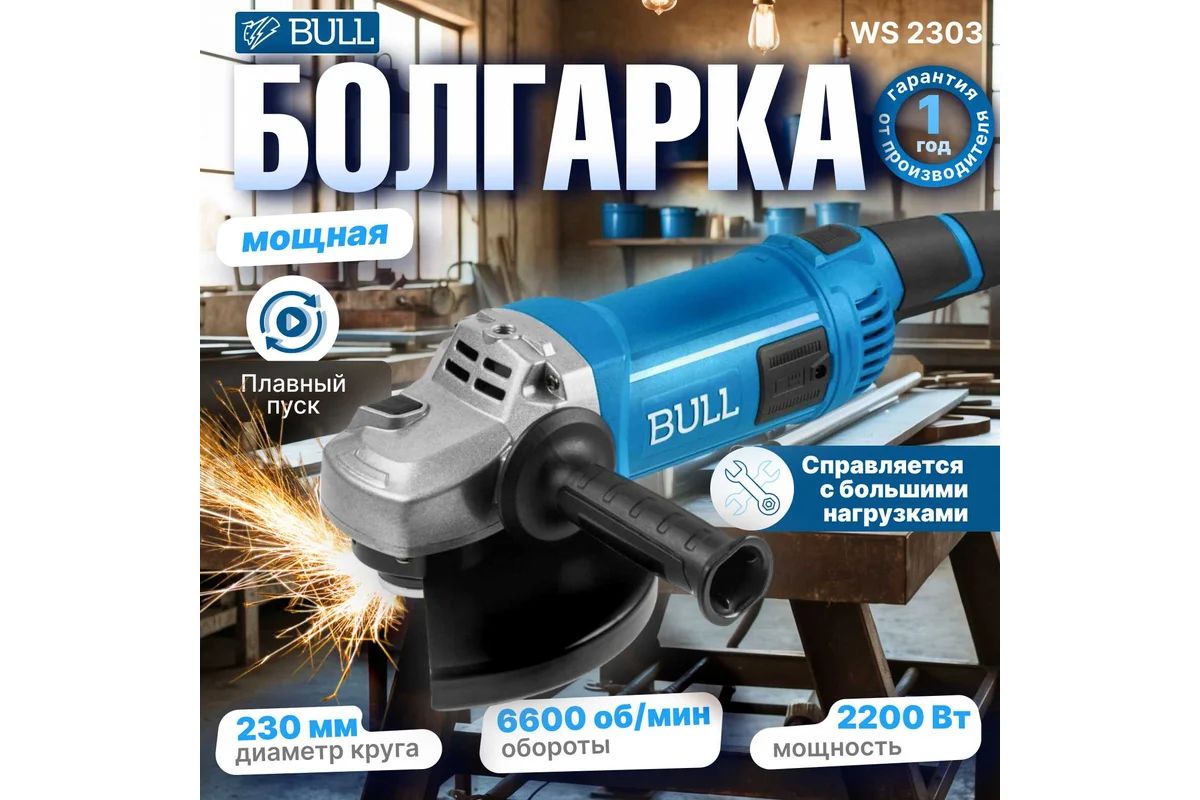 УШМ BULL WS 2303 2200Вт. 230мм. Пыле защита, кабель 4м.