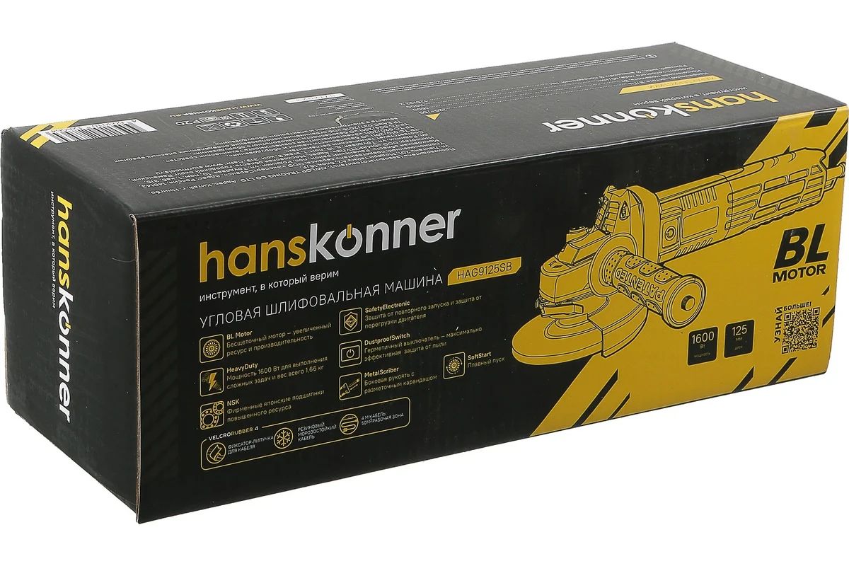 УШМ HansKonner HAG9125SB Бесщеточная, 1600Вт. 125мм. пл.пуск, защита.