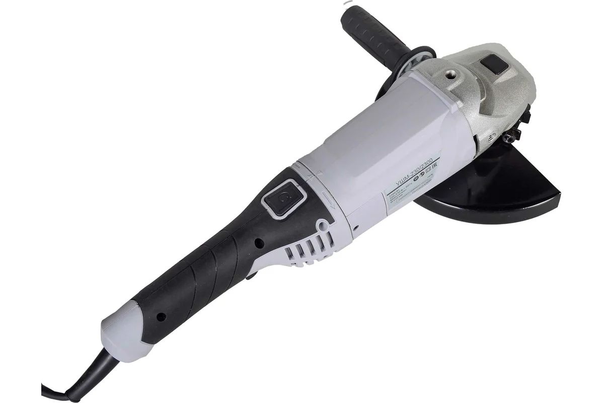 Устройство оснащено электродвигателем мощностью 2300 Вт с бронированным ротором. Наличие бандажа защищает роторную обмотку, повышает надежность УШМ и срок службы агрегата. Частота вращения - 6000 обмин. Включение производится плавно, без рывка за счет плавного пуска. Охлаждение двигателя осуществляется через предусмотренные в корпусе вентиляционные отверстия. Модель имеет дополнительную рукоятку Комфорт, которую можно устанавливать в 3 положениях. Это облегчает работу в различных плоскостях, под любым наклоном, с любой стороны от оператора. УШМ оснащена специальной блокировочной кнопкой для предотвращения случайного нажатия и запуска электродвигателя. Блокировка шпинделя упрощает процесс замены оснастки. Устройство может работать с отрезным, шлифовальным, полировальным кругом диаметром 230 мм, различным зачистным инструментом. Кабель оснащен двойной изоляцией и имеет длину 2 м, которой достаточно для эксплуатации оборудования без применения удлинителя.
