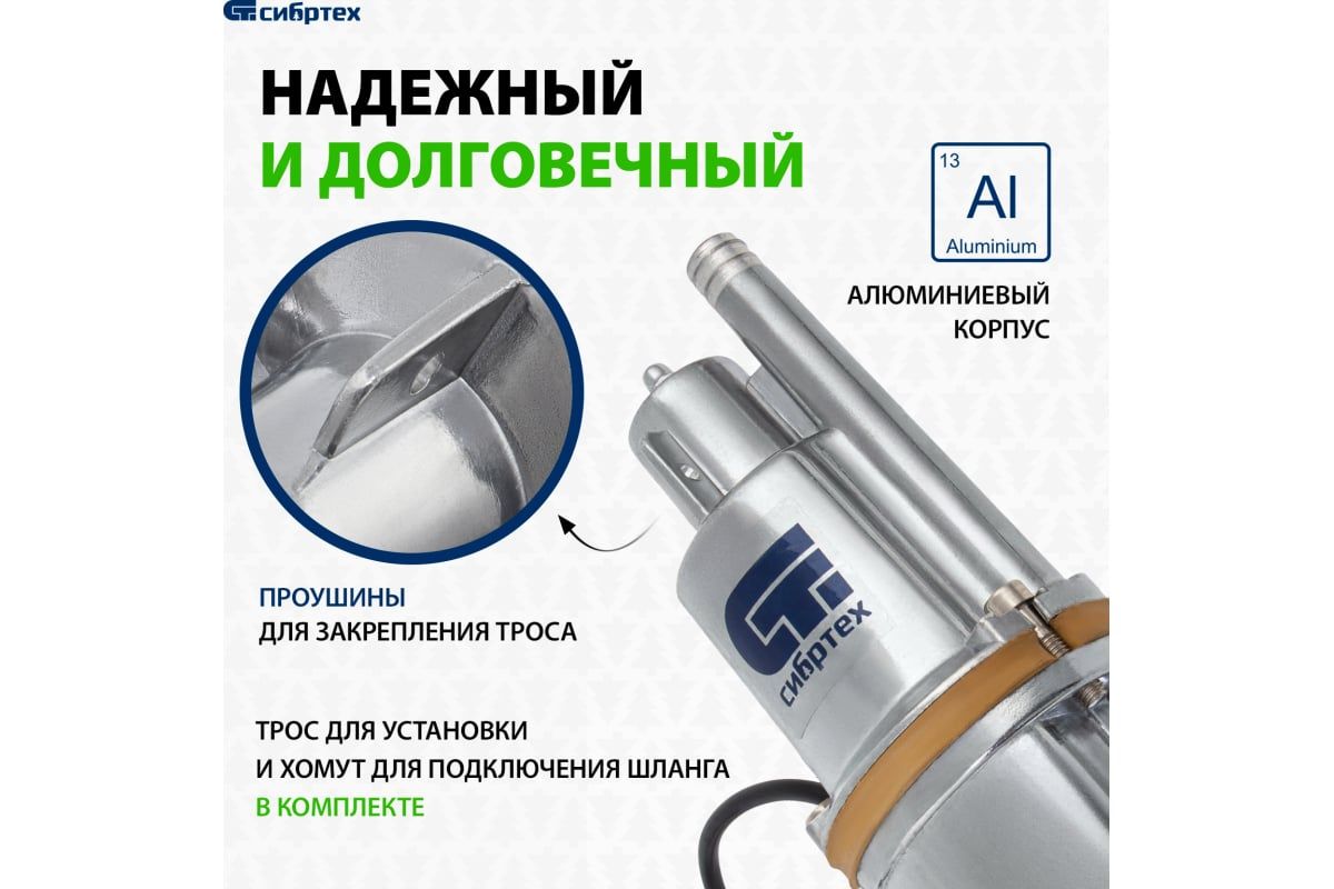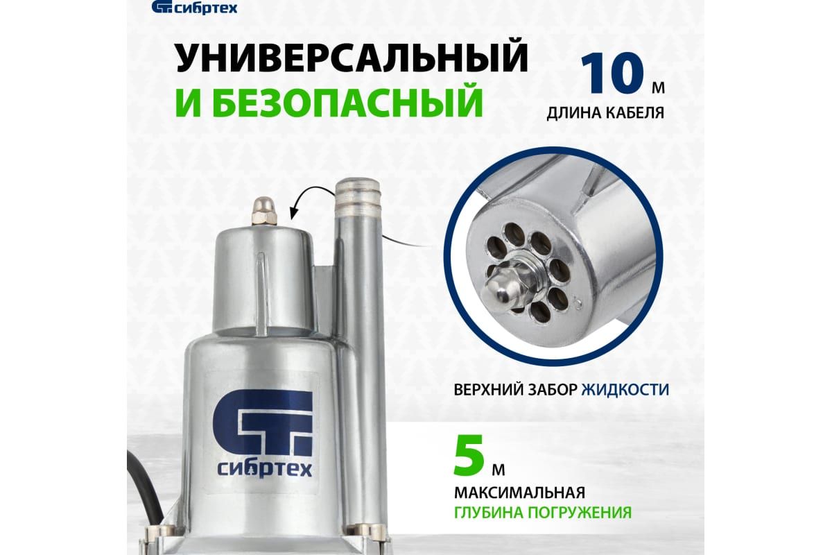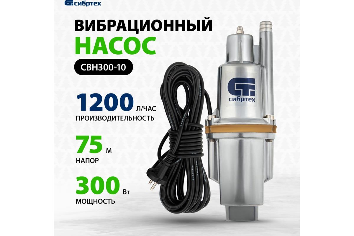 Вибрационный насос СИБРТЕХ СВН300-10 кабель 10 м 99301 предназначен для подачи воды из колодца. Подходит для перекачивания чистой и пресной воды.