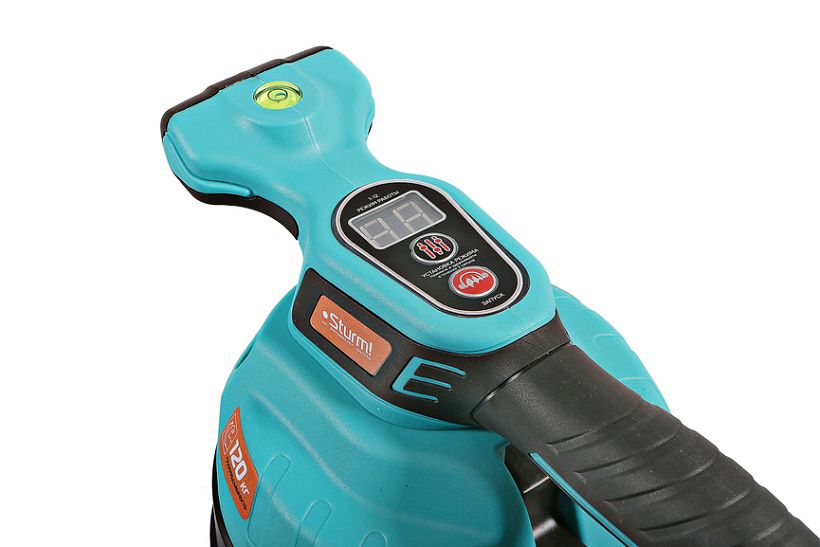 Аккумуляторная виброприсоска для укладки плитки Sturm! TV18120 — профессиональный инструмент, разработанный для переноса, подъема, выравнивания при укладке напольной и настенной плитки больших размеров и веса, керамогранита, гранитных и мраморных плит. Грузоподъемность — 120 кг. Диаметр подошвы — 160 мм.
