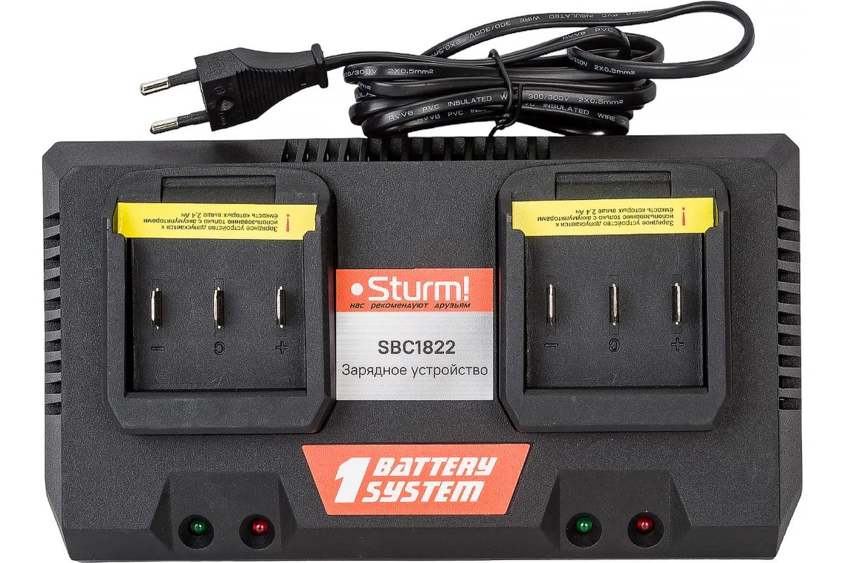 Устройство зарядное 1BatterySystem (18 В; 2 x 4 А) Sturm SBC1822 обеспечивает непрерывную эксплуатацию шуруповерта на протяжении длительного времени. Подходит для заряда Li-on батарей Sturm 1BatterySystem напряжением 18 Вольт.
